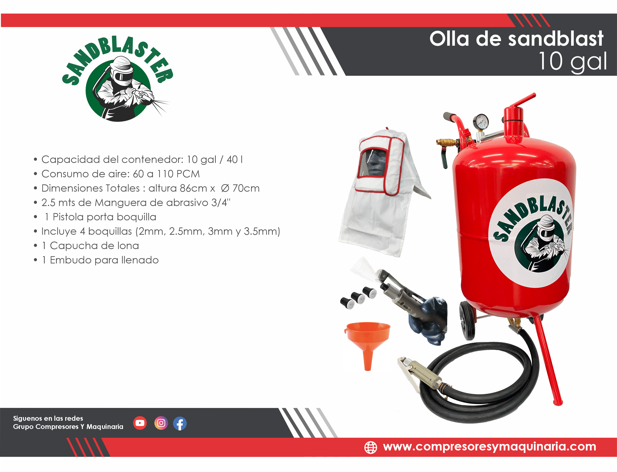 El equipo Sandblaster SB10 te ofrece eficiencia y versatilidad para cualquier proyecto de sandblasteo.